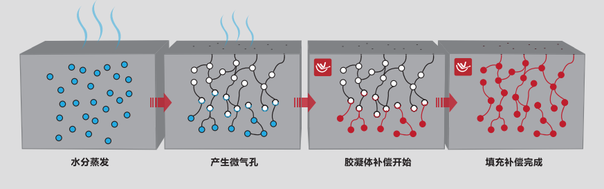 稻殼灰賦予了混凝土自我修復(fù)能力,伴隨混凝土使用過(guò)程中產(chǎn)生的微裂縫,能自修復(fù)0.6mm以下細(xì)微裂縫、孔隙和毛細(xì)孔道,使結(jié)構(gòu)主體成為具有自愈合功能的防水屏障。