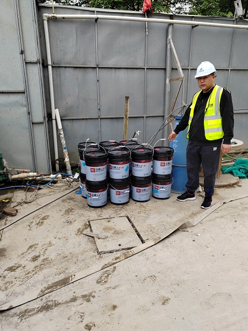 3.施工現(xiàn)場(chǎng)添加步驟:每立方混凝土配合比適當(dāng)減水+LV-8自愈型無機(jī)納米結(jié)晶防水劑,加入混凝土罐車中攪拌均勻,快速攪拌3~8分鐘,攪拌均勻即可澆筑。