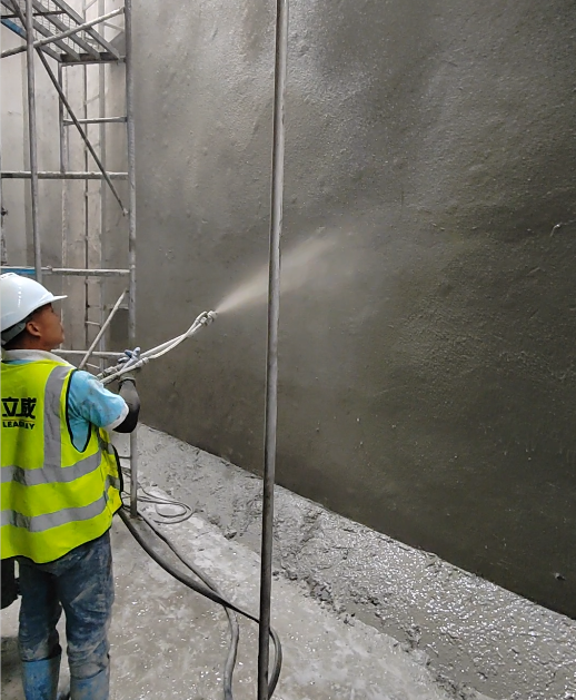 1)基面清理:基層處理保證混凝土基層清潔、堅實、施工前需充分潤濕基層。