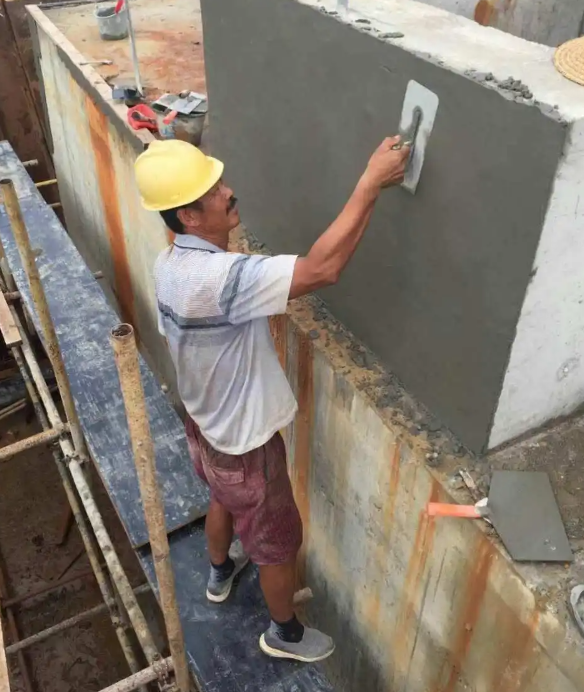 基層應干凈、堅實、平整、無孔洞,不應有浮砂、空鼓、開裂,施工前基層需要潤濕。涂刷防碳化涂層之前,混凝土基面應預先噴水清洗和濕潤處理,稍晾一段時間后無潮濕感時再施刷涂料。