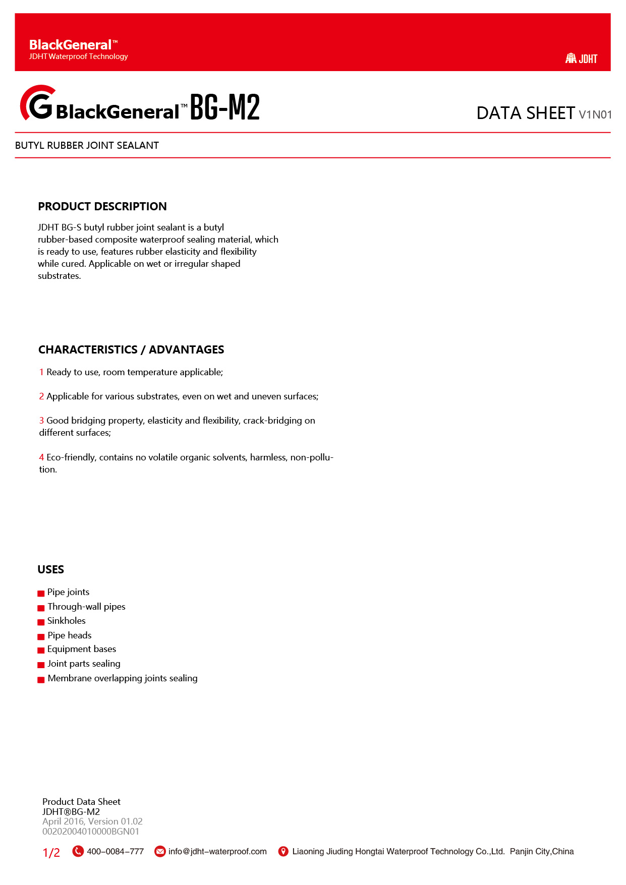 BG-M2丁基橡膠節(jié)點(diǎn)密封膏是一種丁基橡膠基復(fù)合型防水密封材料,開罐即用,涂膜干固后,保持橡膠彈性和柔性??稍诔睗?、結(jié)構(gòu)復(fù)雜的基面上進(jìn)行施工并能與多種建筑材料界面形成有效地密封粘結(jié)。